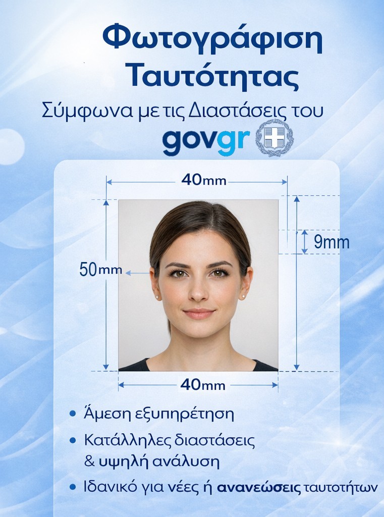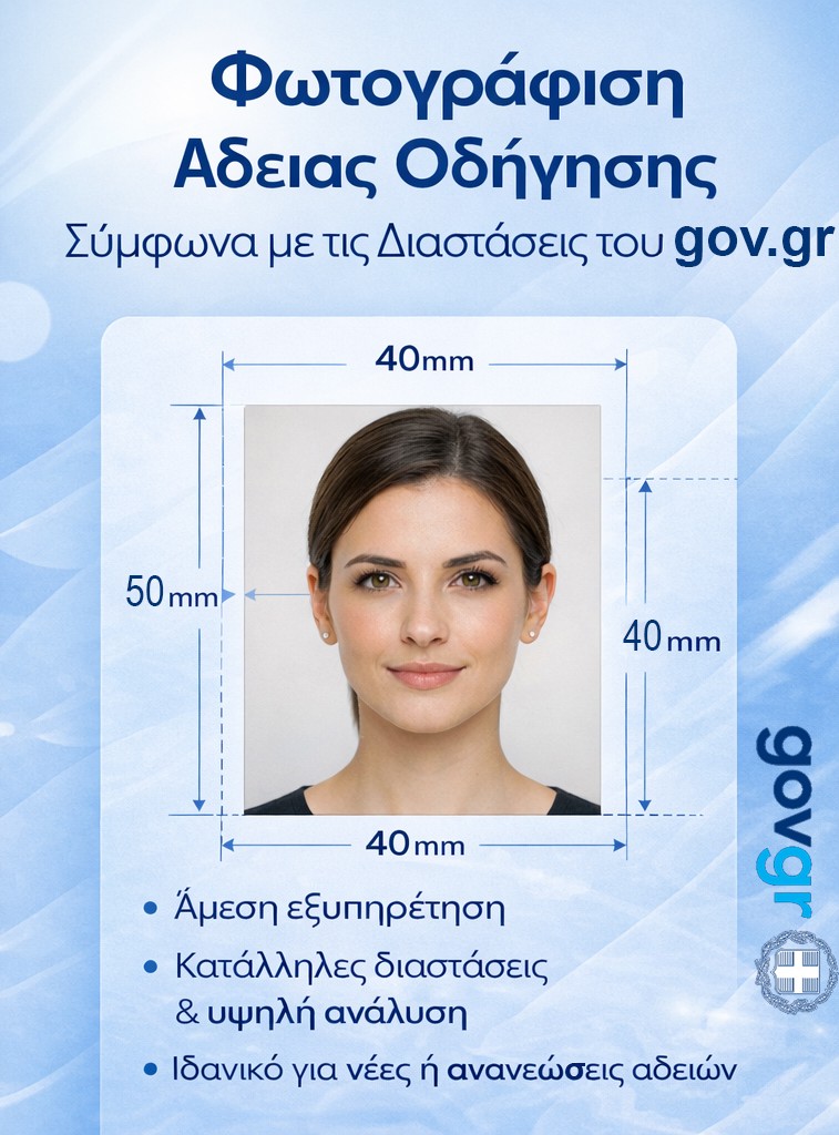 Με μια προσεγμένη φωτογραφία, η διαδικασία έκδοσης των εγγράφων γίνεται γρήγορη, ασφαλής και χωρίς προβλήματα, ενώ η εικόνα σας παραμένει φυσική και επαγγελματική.